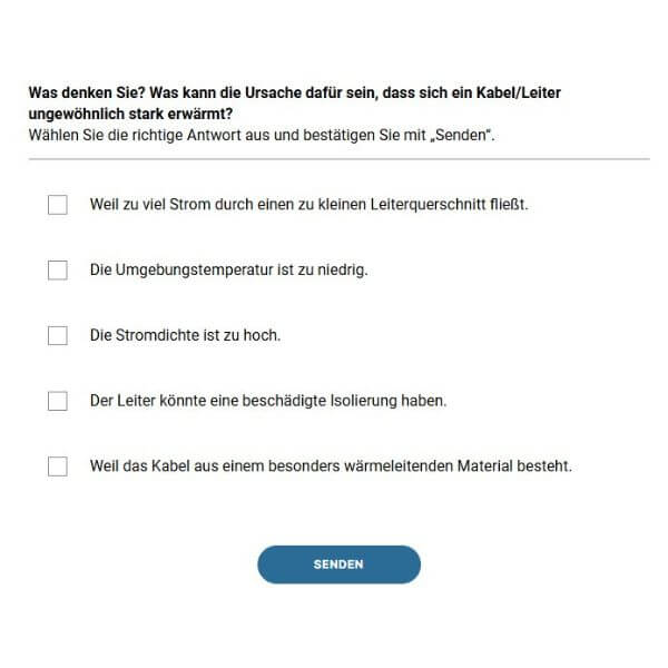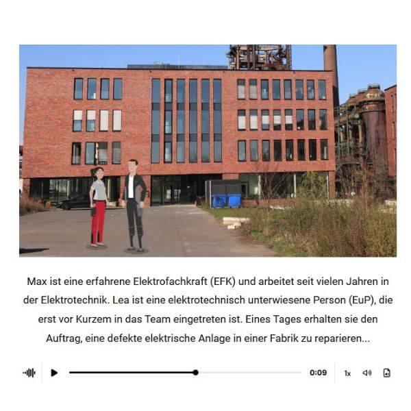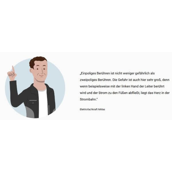 Dieses E-Learning vermittelt elektrotechnisch unterwiesenen Personen (EuP) praxisnah die Grundlagen der Elektrotechnik, schärft das Bewusstsein für Gefahren und zeigt, wie Risiken durch die konsequente Anwendung der fünf Sicherheitsregeln sowie der DIN VDE 0105-100 vermieden werden können. Verständliche Beispiele, Videos und interaktive Übungen erleichtern das Lernen und fördern die Umsetzung im Arbeitsalltag. Ein abschließendes Feedbackgespräch zur betrieblichen Praxis sowie eine personalisierte Teilnahmebestätigung runden die gesetzlich vorgeschriebene Unterweisung ab.