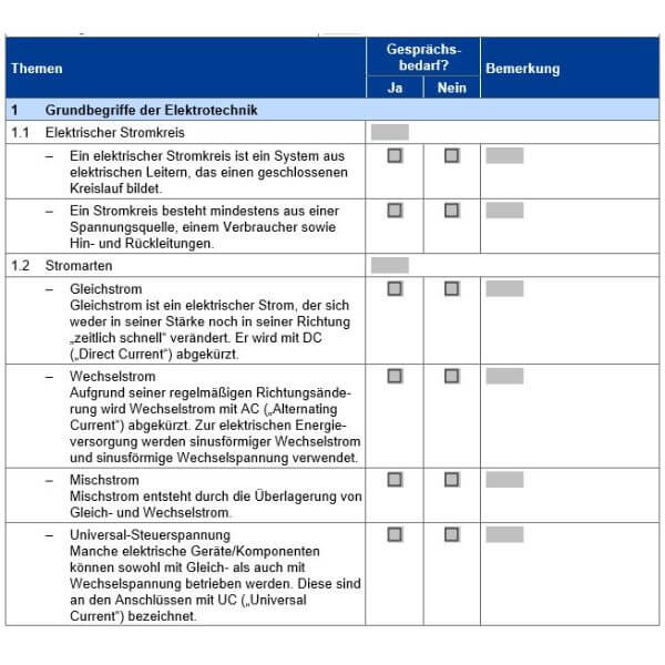 - Für die jährliche Sicherheitsunterweisung von elektrotechnisch unterwiesenen Personen